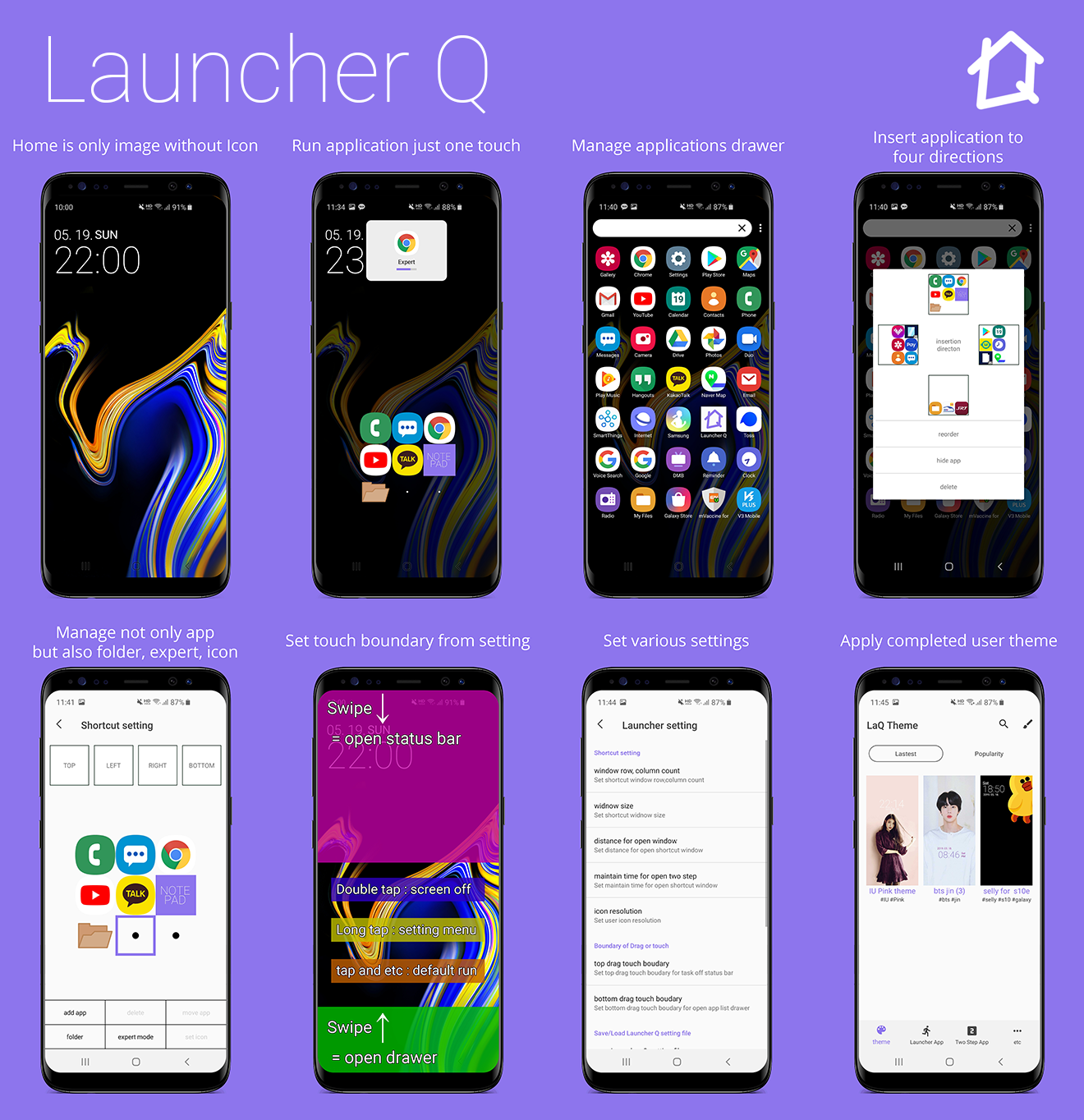 (https://github.com/seose/launcher-q, https://play.google.com/store/apps/details?id=seoft.co.kr.launcherq)