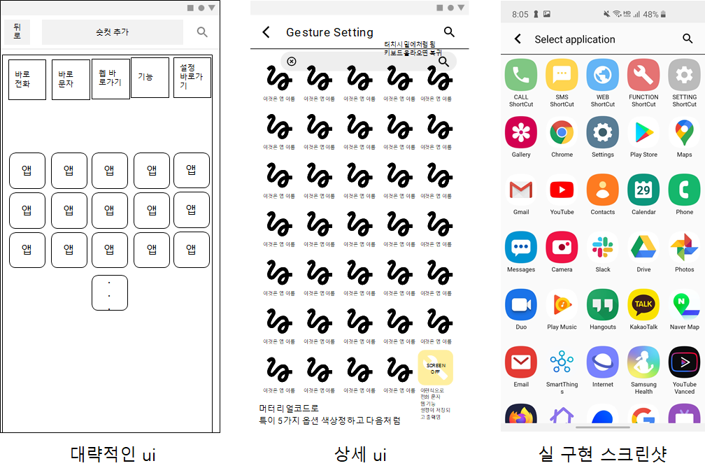 다음은 대략 UI, 상세UI, 실구현 단계로 같은 화면단위로 한번 모아보았다.