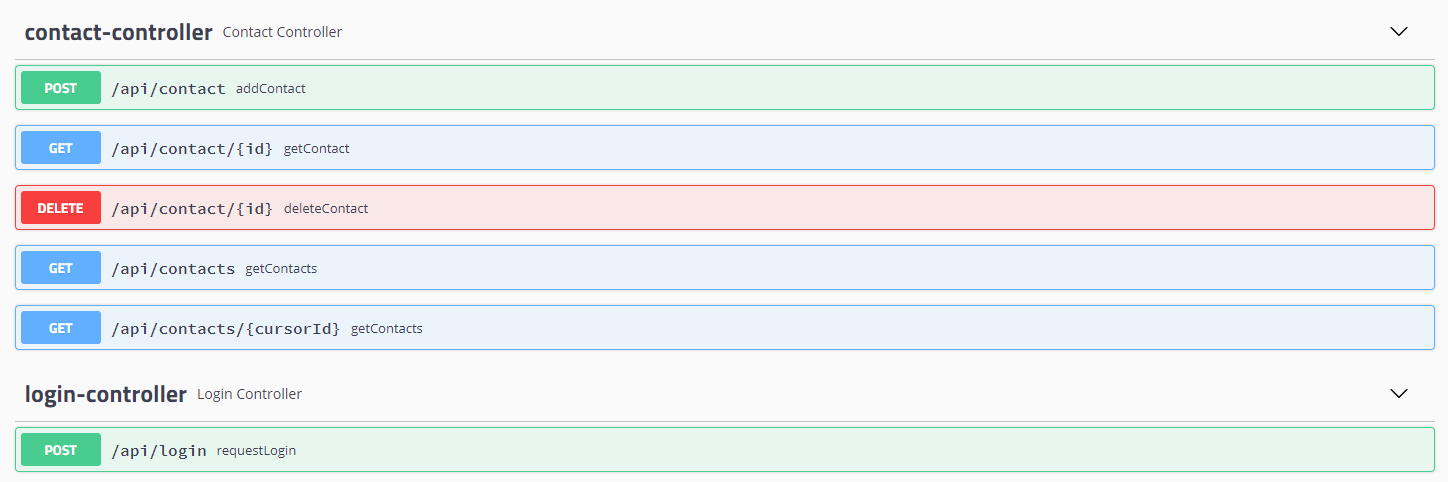 example-server-for-clean-architecture는 안드로이드 데모앱이 연동되는 api 서버이며 api들은 다음과 같이 구성되있습니다.